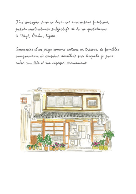 « J’aime explorer les territoires inconnus, la vieillesse en est encore un, du moins pour quelques temps. » Au cours de ses nombreux séjours au Japon, l’intérêt d’Isabelle Boinot pour les personnes âgées, les otoshiyori, ne cesse de grandir. Elle les côtoie, les observe, les dessine. C’est un univers fragile que l’autrice s’est employée à consigner, élaborant un vaste répertoire de pâtisseries, de lieux, d’emballages colorés, d’animaux de compagnie, de petits chariots et de poussettes indispensables à la vie quotidienne. Elle nous fait entrer dans les kissaten, ces cafés de quartier traditionnels qu’elle affectionne et rend avec délicatesse la séduisante désuétude de ces lieux, bien souvent aussi anciens que leur propriétaire. Sous les couleurs douces et pastel, la vie n’est pourtant pas toujours facile. Nombreux sont les otoshiyori à devoir, par nécessité financière, rester en activité à 70 ans passés et leur précarité se fait d’autant plus discrète que la pression à ne pas peser sur le reste de la société est forte.