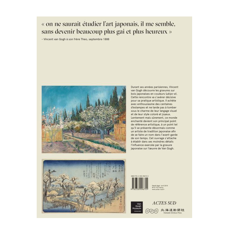 La rencontre de Vincent Van Gogh (1853-1890) avec les estampes ukiyo-e japonaises pendant son séjour à Paris a été décisive pour la direction que prendrait son art dans les années à venir. Il a rassemblé avec enthousiasme une collection d’estampes avec l’idée d’y travailler, et a été bientôt captivé par leur imagerie et leur style coloré et gai qui ont commencé à exercer une influence dramatique sur son propre travail. Petit à petit, ce monde enchanté devint son principal point de référence artistique. Désormais, il se positionne comme un artiste dans la tradition japonaise afin de se faire une réputation auprès des avant-gardistes du moment. Cette superbe publication offre une réévaluation détaillée de l’inspiration de l’estampe japonaise sur la production créative de Van Gogh. Avec des essais des meilleurs experts de Van Gogh au monde, ce livre détaille les façons dont l’artiste a construit sa compréhension de l’esthétique japonaise et son idéal utopique d’une société dite primitive, et les a intégrées dans sa propre vision et pratique. La taille, la nature et l’importance de la collection d’estampes japonaises de Van Gogh seront également explorées. Les illustrations somptueuses incluent des peintures à l’huile et des dessins de Van Gogh ainsi qu’une sélection d’œuvres japonaises qui ont tellement captivé son imagination.